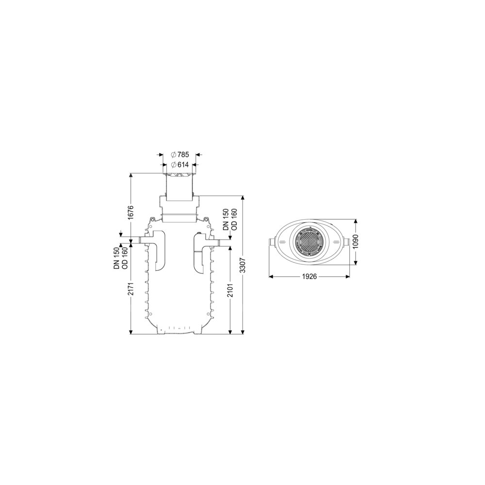 Odstęp między dnem rury dopływowej a dnem zbiornika: 2170 mm