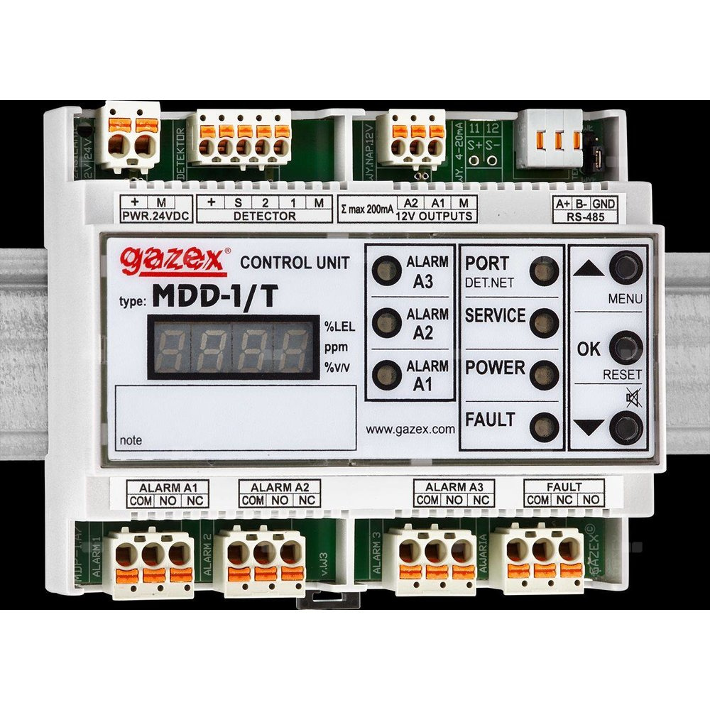 Pomiarowe moduły alarmowe typu MDP-4(8,16) są przeznaczone do kontroli i zasilania detektorów gazów typu DEX/F, DEX/P, DEX/A oraz DG/F, DG.EN, DG/P produkowanych przez GAZEX, do stosowania w Dwuprogowym (lub Pomiarowym) Systemie Detekcji Gazów lub w Aktywnym Systemie Bezpieczeństwa Instalacji Gazowej GX.