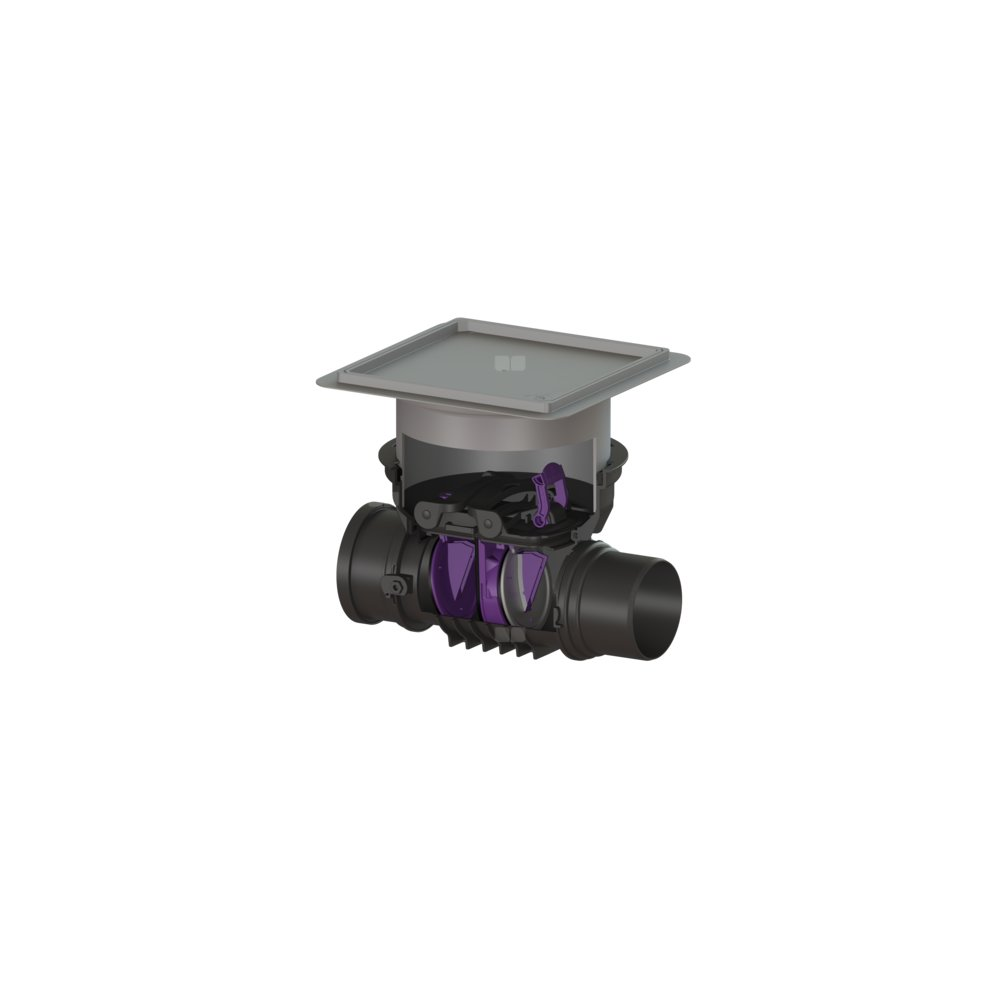 Zawór zwrotny Staufix DN 150 z pokrywą pod płytki z 1 klapą z tworzywa i 1 klapą ze stali nierdzewnej