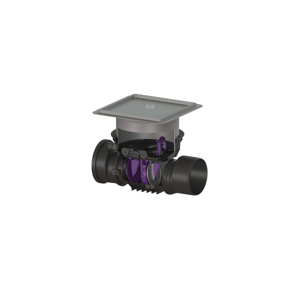 Zawór zwrotny Staufix DN 200 z pokrywą pod płytki z 1 klapą z tworzywa i 1 klapą ze stali nierdzewnej