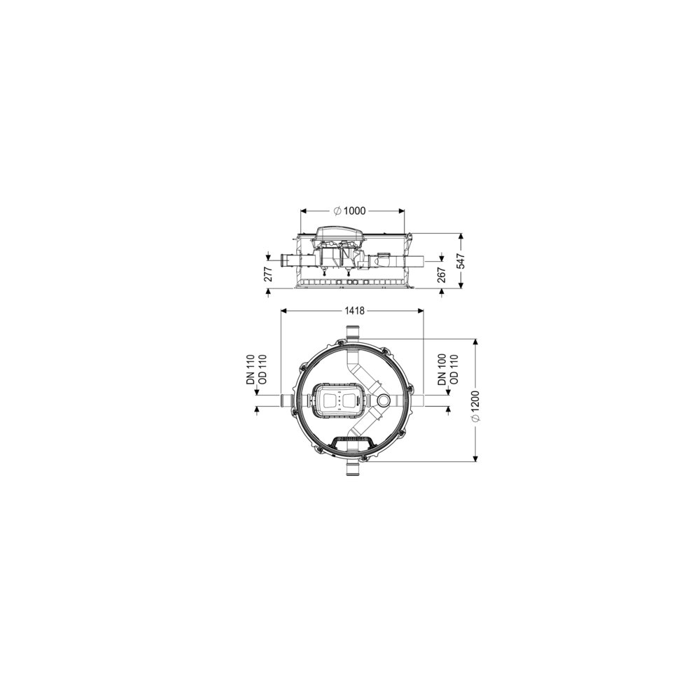 - Odstęp między środkiem rury dopływowej a dnem zbiornika: 277 mm
