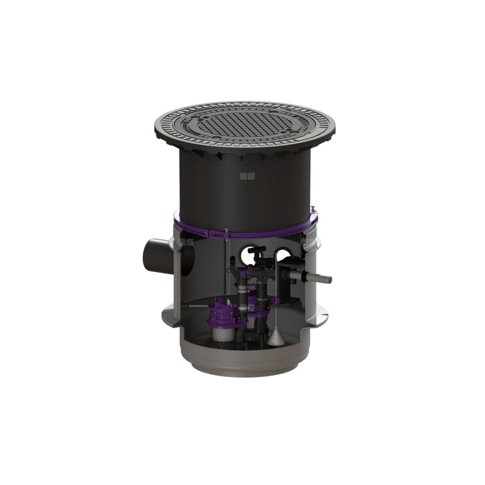 Przepompownia do ścieków zawierających fekalia jest przystosowana do zabudowy w ziemi i wyposażona w klapę zwrotną do przewodu tłocznego. Zbiornik z PE-LLD jest odporny na agresywne czynniki i może być dostarczony z pokrywami w klasie obciążenia A, B lub D. Pompa z mechanizmem rozdrabniającym zapewnia najwyższe bezpieczeństwo pracy. Komponenty są wstępnie zmontowane do montażu końcowego w miejscu instalacji. Z płaszczyznami na podłączenie odpowietrzenia i rury osłonowej na przewody elektryczne.