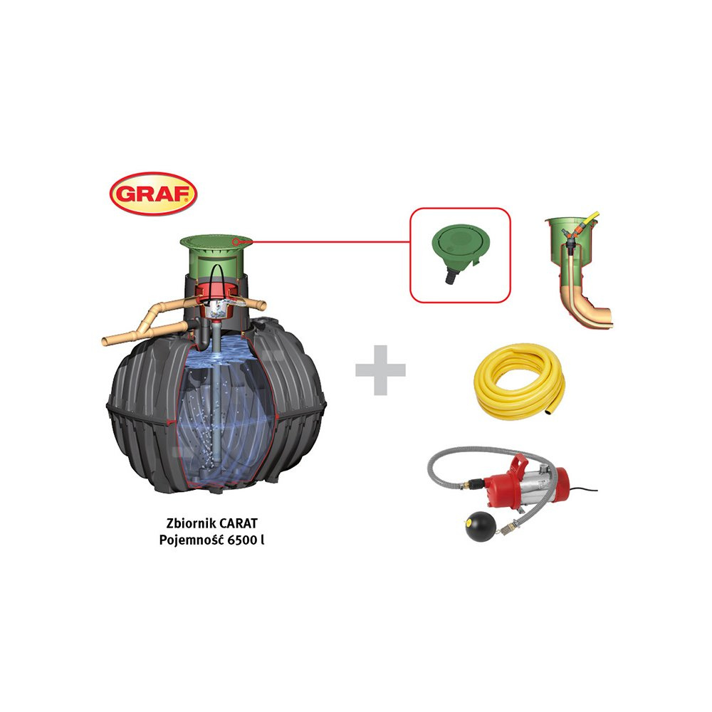 Ogród KOMFORT CARAT 6500L- podziemny zbiornik na deszczówkę, magazyn wody deszczowej, zestaw ogrodowy do magazynowania wody deszczowej, zestaw do podlewania ogrodu , Zbiornik na wodę deszczową , pompa zatapialna , filtr wewnętrzny