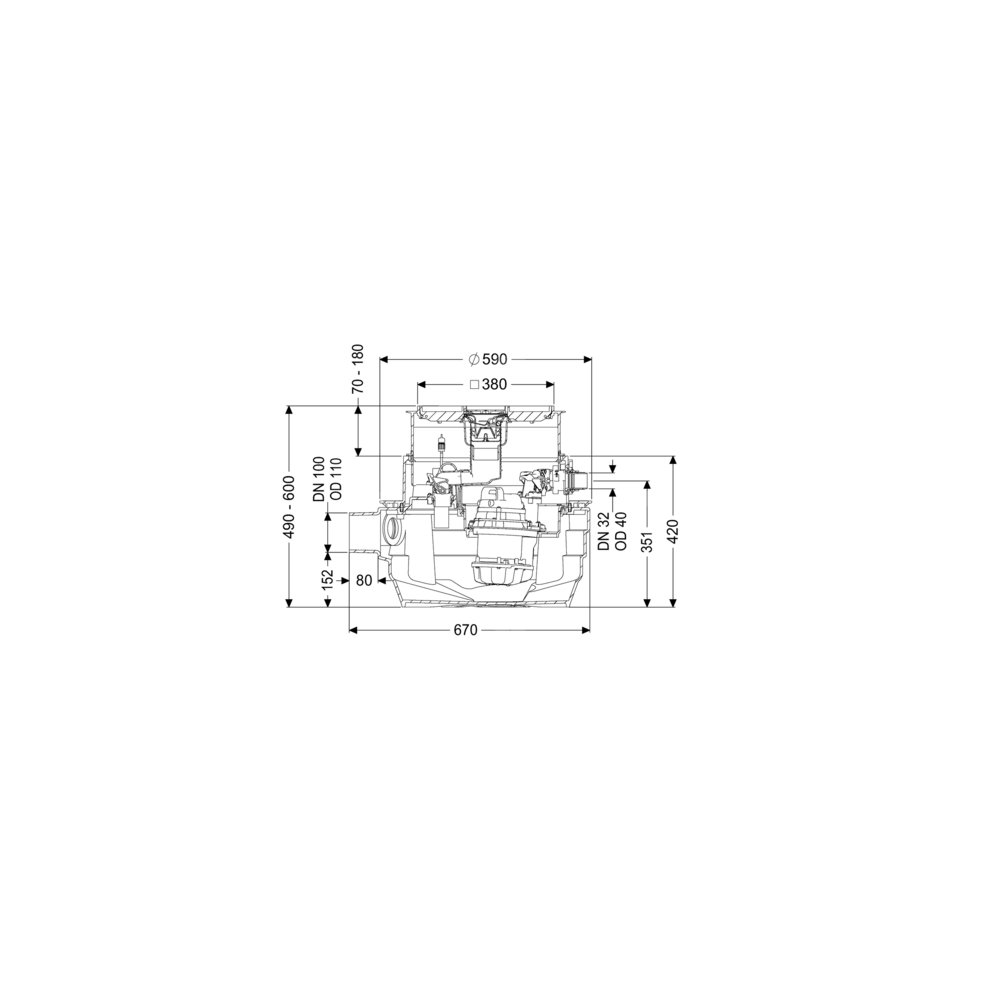 KESSEL Przepompownia Aqualift F Compact Duo, ścieki fekalne, typ pokrywy pokrywa do wklejenia płytek, zabudowa w płycie podłogowej, głębokość zabudowy 490 - 600 mm, urządzenie dwupompowe, z 2 SPZ 1000 pomp zatapialnych