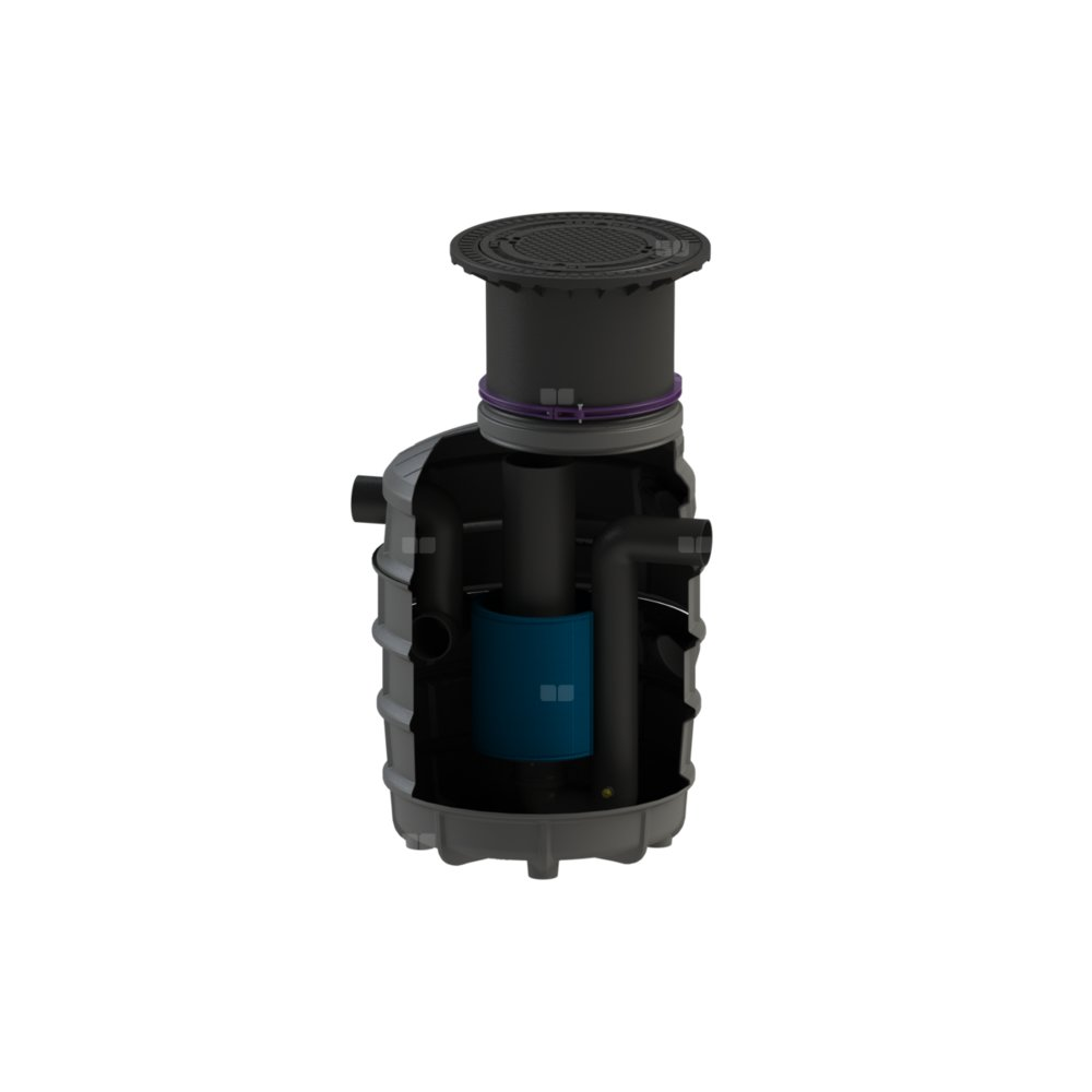 Separator cieczy lekkich nadaje się do zabudowy w ziemi i jest wyposażony w wyjmowany wkład koalescencyjny. Zbiornik wykonany z trwałego tworzywa sztucznego (PE) zawiera zintegrowany osadnik i samoczynne urządzenie zamykające. Dwie wodoszczelne pokrywy chroniące przed wodą napowierzchniową umożliwiają łatwy dostęp w celu wyczyszczenia lub konserwacji.