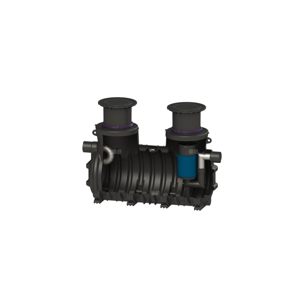Separator cieczy lekkich nadaje się do zabudowy w ziemi i jest wyposażony w wyjmowany wkład koalescencyjny. Zbiornik wykonany z trwałego tworzywa sztucznego (PE) zawiera zintegrowany osadnik i samoczynne urządzenie zamykające. Dwie wodoszczelne pokrywy chroniące przed wodą napowierzchniową umożliwiają łatwy dostęp w celu wyczyszczenia lub konserwacji. Dla klasy obciążenia D należy w miejscu instalacji zamontować płytę odciążającą. Schematy zbrojenia są dostępne w firmie KESSEL. Możliwe jest przyłączenie na miejscu budowy na dopływie i odpływie rur PE-HD wg DIN 19537, rur PVC-KG wg DIN 19534, PP lub AS do fabrycznie wykonanych króćców rurowych ze stali nierdzewnej. Przy doborze odpowiednich uszczelnień i materiałów rurowych należy przestrzegać obowiązujących norm. Gwarancja na tworzywo PE wynosi 20 lat.
