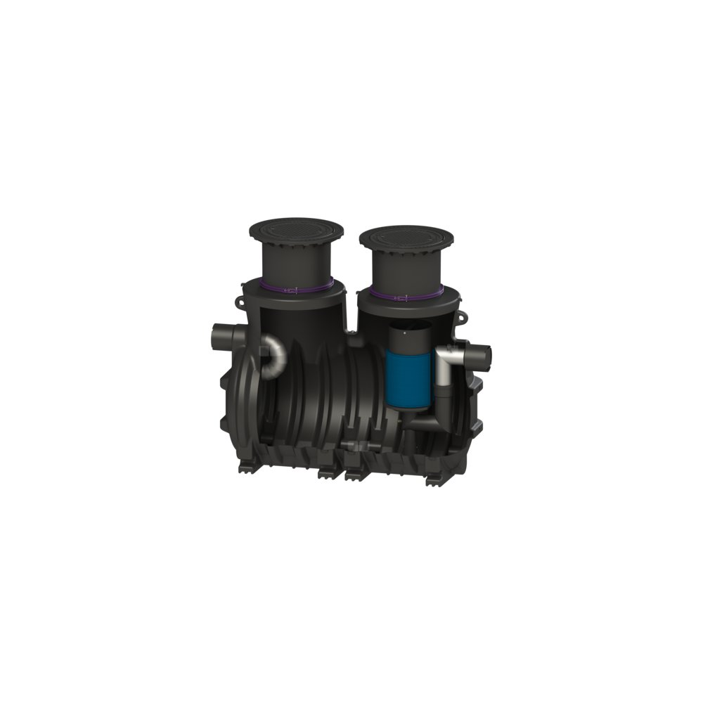 Separator cieczy lekkich nadaje się do zabudowy w ziemi i jest wyposażony w wyjmowany wkład koalescencyjny. Zbiornik wykonany z trwałego tworzywa sztucznego (PE) zawiera zintegrowany osadnik i samoczynne urządzenie zamykające. Dwie wodoszczelne pokrywy chroniące przed wodą napowierzchniową umożliwiają łatwy dostęp w celu wyczyszczenia lub konserwacji. Dla klasy obciążenia D należy w miejscu instalacji zamontować płytę odciążającą. Schematy zbrojenia są dostępne w firmie KESSEL. Możliwe jest przyłączenie na miejscu budowy na dopływie i odpływie rur PE-HD wg DIN 19537, rur PVC-KG wg DIN 19534, PP lub AS do fabrycznie wykonanych króćców rurowych ze stali nierdzewnej. Przy doborze odpowiednich uszczelnień i materiałów rurowych należy przestrzegać obowiązujących norm. Gwarancja na tworzywo PE wynosi 20 lat.