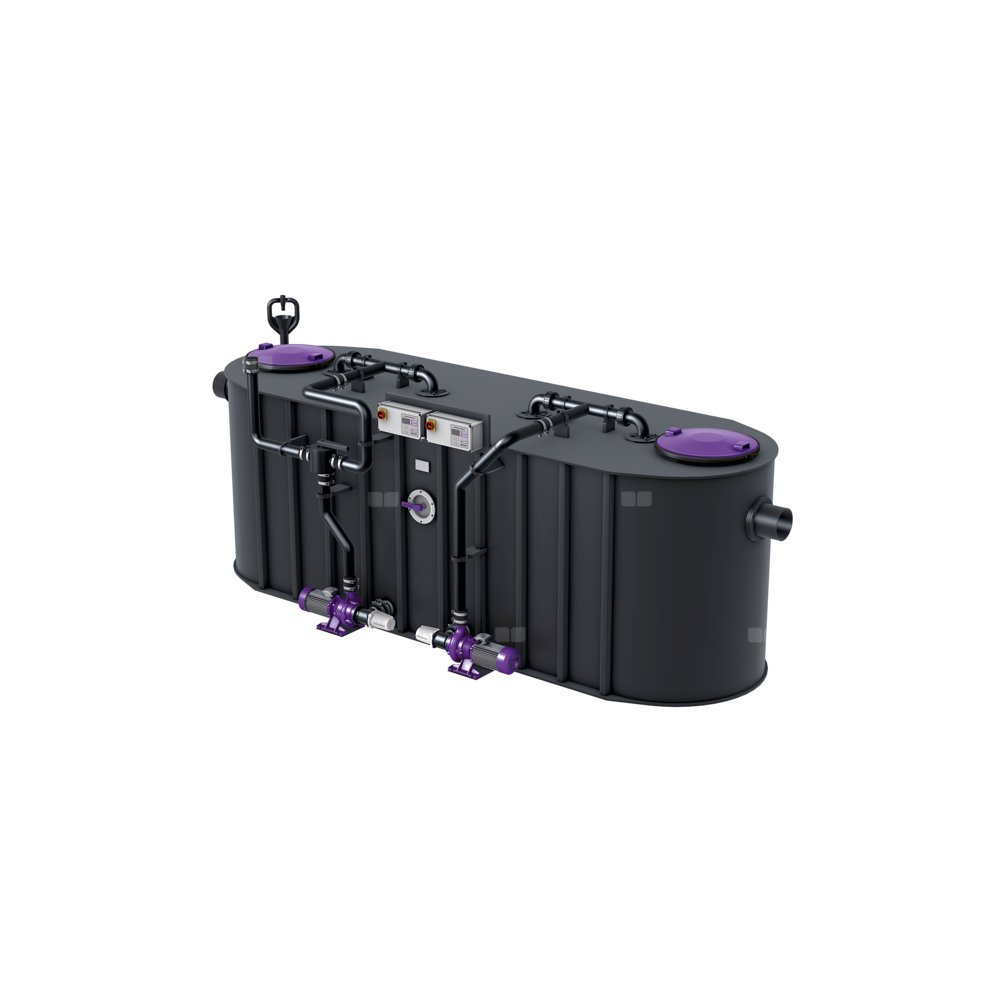 Separator do ścieków zawierających tłuszcze jest przystosowany do swobodnego ustawienia w pomieszczeniach nieprzemarzających, a jego zbiornik nie zawiera metalowych elementów. Zbiornik wykonany z trwałego tworzywa sztucznego (PE) jest wyposażony w zintegrowany osadnik i ma dno z ukośnymi elementami, które umożliwia szybkie i całkowite usuwanie zawartości. Dwie szczelne zapachowo pokrywy z zamknięciami szybkomocującymi umożliwiają łatwy dostęp w celu wyczyszczenia lub konserwacji. Innowacyjny system „Schredder-Mix“ ze zintegrowanym rozdrabniaczem dokonuje homogenizacji i przetłoczenia zawartości zbiornika. Czyszczenie i usuwanie zawartości zbiornika bez obecności przykrych zapachów następuje przy tym poprzez znajdującą się na zewnątrz pompę z zaworem 2-drożnym i dźwignią przełączającą, którą można oddzielić od zbiornika urządzenia przy pomocy zasuwy odcinającej. Ręczne sterowanie następuje przy pomocy przyjaznego w użyciu urządzenia sterowniczego, które przy pomocy kontaktu bezpotencjałowego można włączyć w system zarządzania budynkiem (BMS). Gwarancja na tworzywo PE wynosi 20 lat.