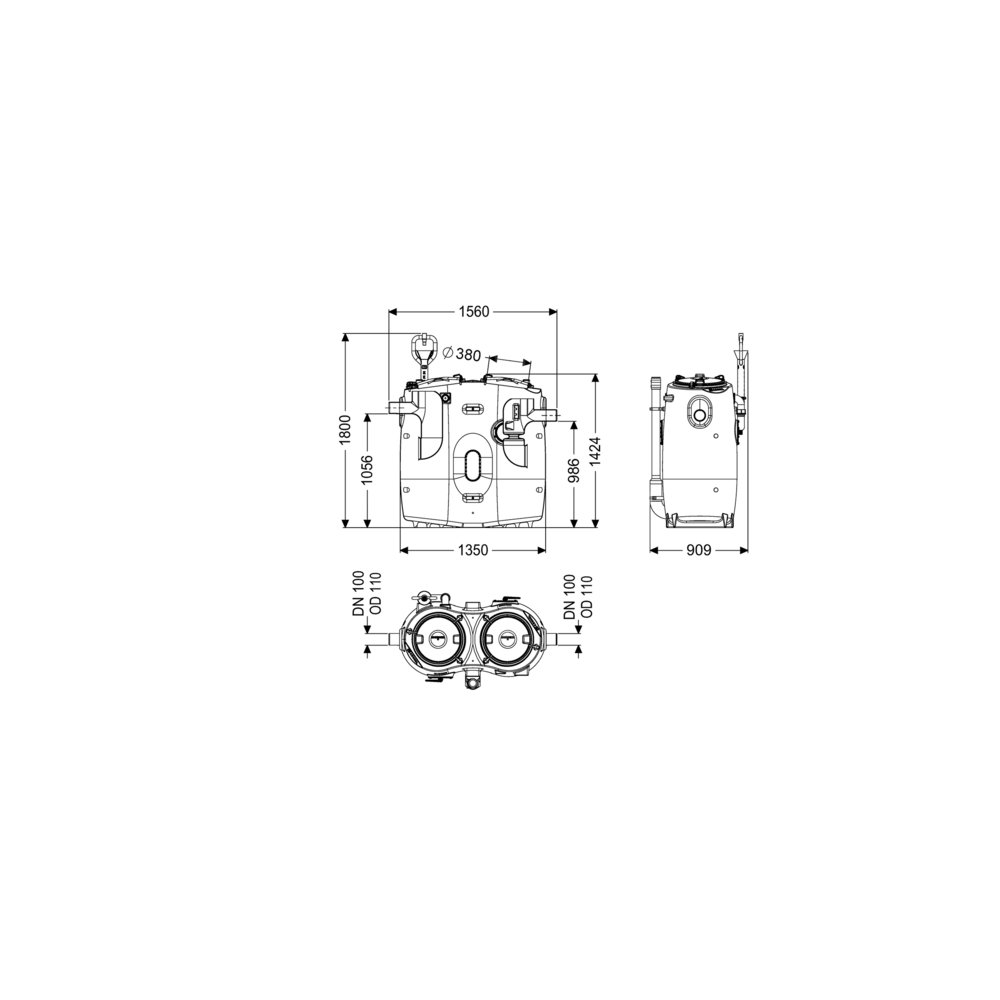 - Odstęp między dnem rury odpływowej a dnem zbiornika: 985 mm