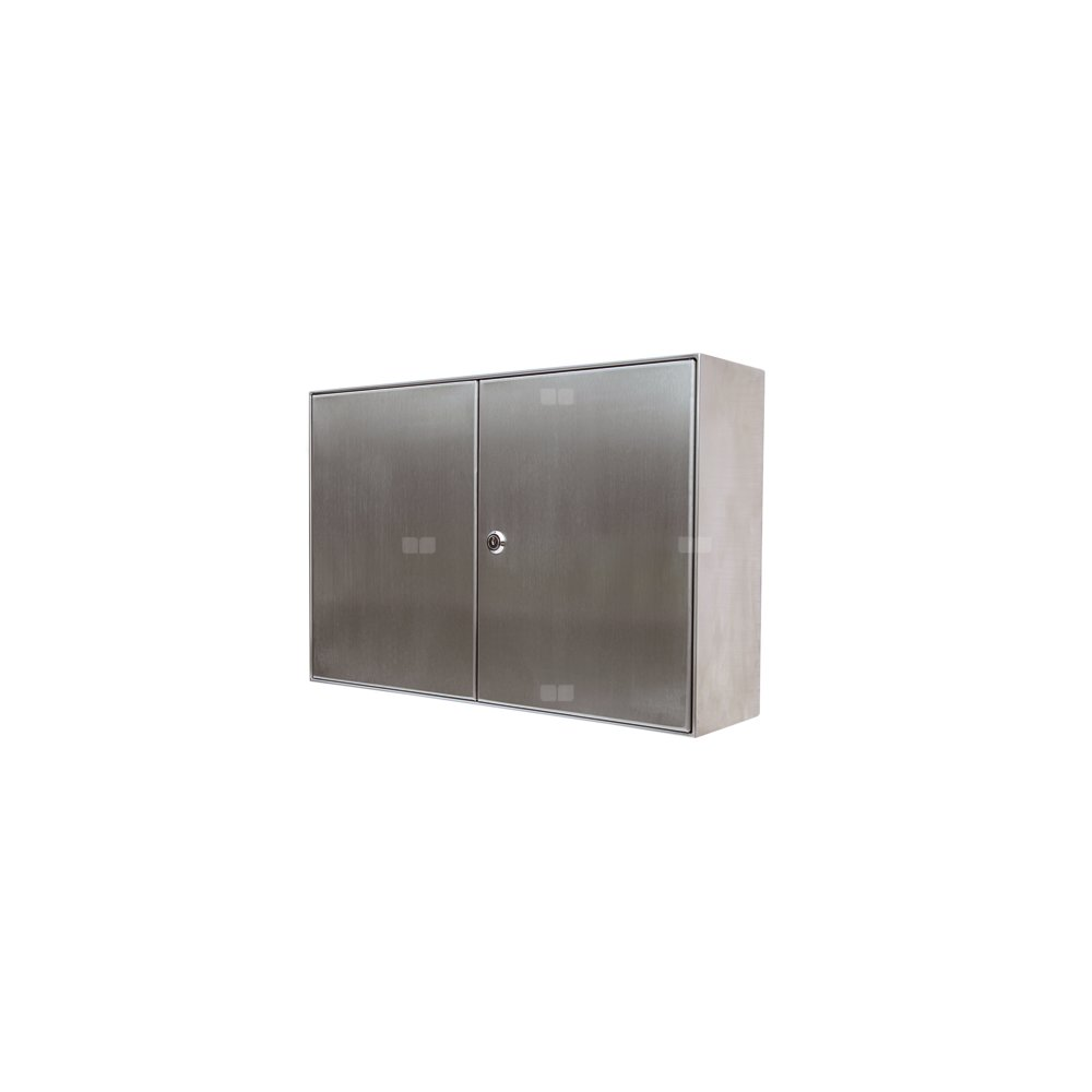 Szafka sterownicza w środku sprzęgła strażackiego Storz B i zdalnego sterownika do separatorów sterowanych w pełni automatycznie. Wersja: natynkowa Przód: 2 x zamykane drzwiczki Tylna ściana: zamknięta, z otworami