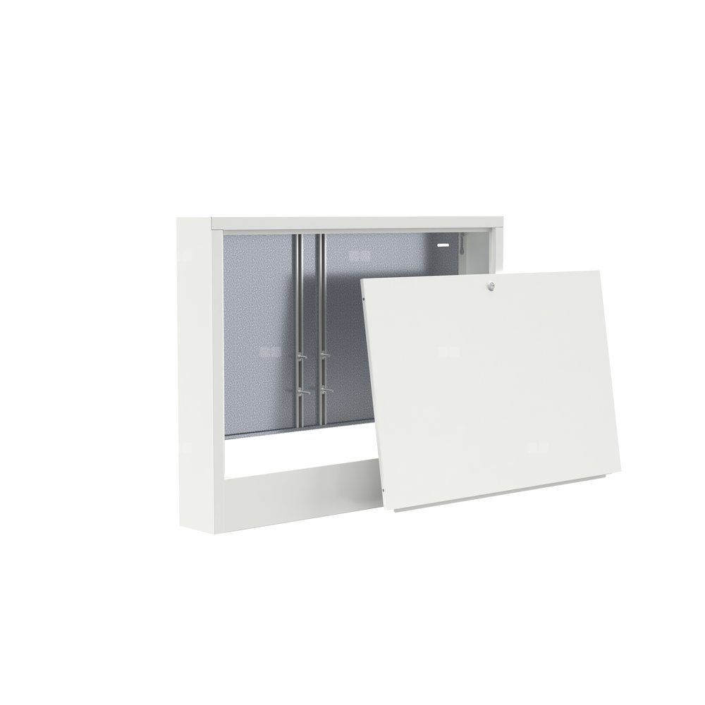 Rozdzielaczowe szafki natynkowe o głębokości 110 mm, wykonane w całości z blachy stalowej ocynkowanej o grubości 0,8 mm malowane proszkowo w kolorze RAL 9003.