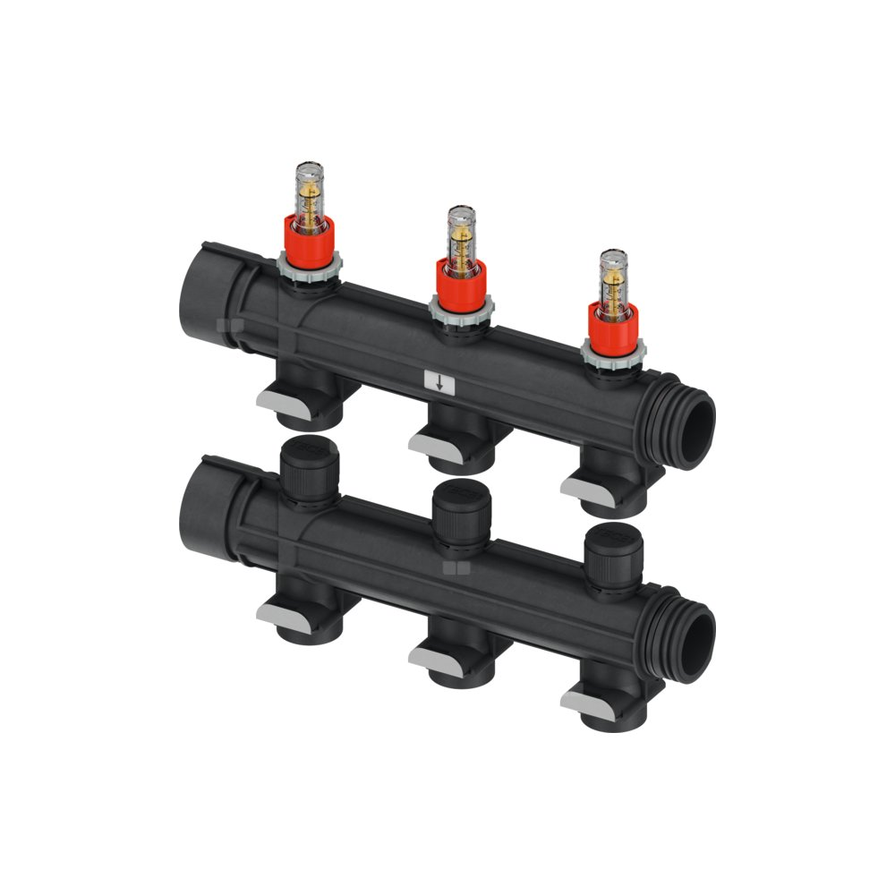 TECEfloor kompletny moduł rozdzielacza ogrzewania przemysłowego, zawierający powrót i zasilanie, 3-sekcyjny