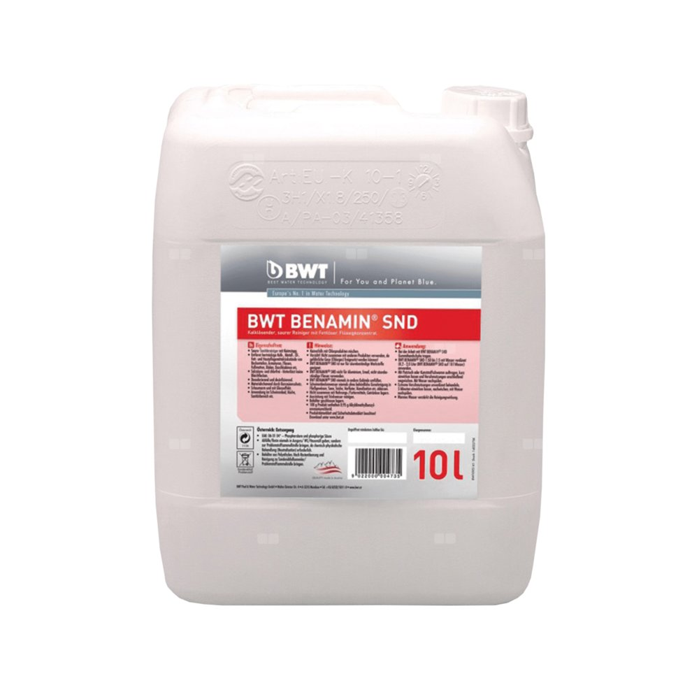 Benamin SND jest koncentratem czyszczącym o odczynie kwaśnym. Przeznaczony jest do szybkiego i skutecznego usuwania osadów kamiennych, zanieczyszczeń z kosmetyków i innych substancji z dna i ścian basenu, powierzchni przybasenia oraz armatury, kabin prysznicowych, mat podłogowych itp. Może być stosowany na pływalniach, w łazienkach, toaletach, kuchniach i innych miejscach wymagających utrzymania czystości. Zawiera kwasy organiczne, substancje aktywne i środki zapachowe. Nie zawiera chloru. Nie zostawia białych plam. Delikatnie się pieni i pozostawia połysk. Własności: różowa ciecz o słodkim zapachu.