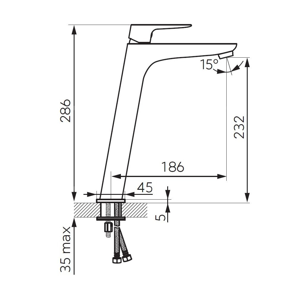 Oszczędnościowa, wysoka bateria umywalkowa w nowoczesnym, prostokątnym dizajnie. Aerator z ogranicznikiem przepływu i funkcją napowietrzania redukuje zużycie wody przy jednoczesnym zachowaniu komfortu użytkowania. System Easy Clean ułatwi usuwanie osadu wapiennego z sitka aeratora.