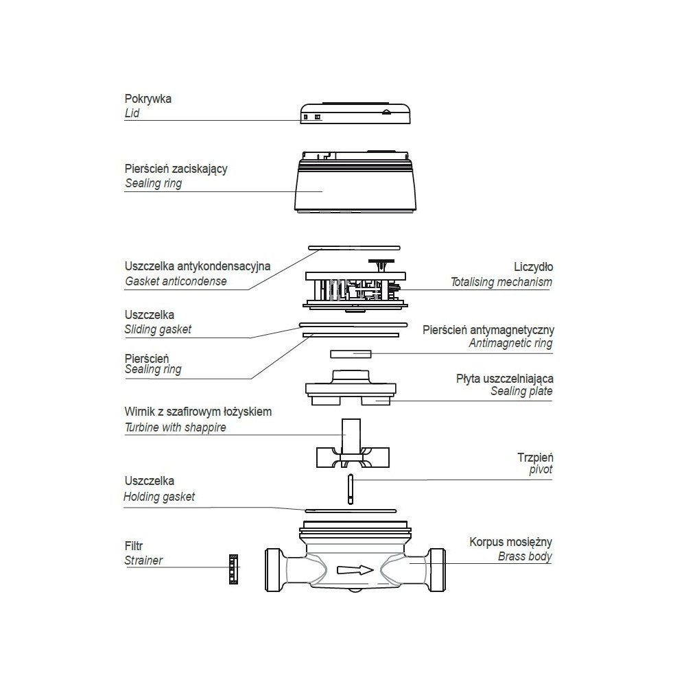 Wodomierz jednostrumieniowy suchobieżny antymagnetyczny, typu GSD8-I DN 20 Q3=4,0 m3/h R160/50, Tmax: 90st.C, L=130 mm