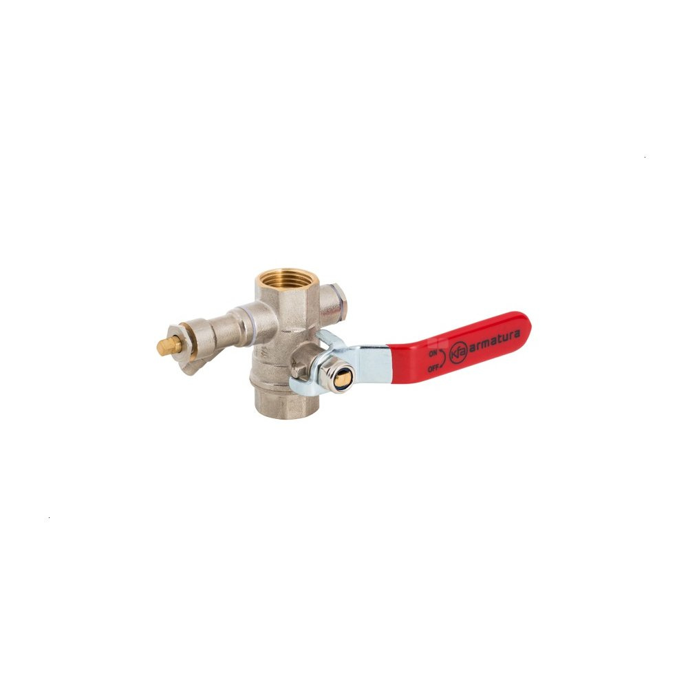 Zawór kulowy nakrętno-nakrętny DN15 (1/2") z zaworkiem odpowietrzająco-spustowym, korkiem i dźwignią