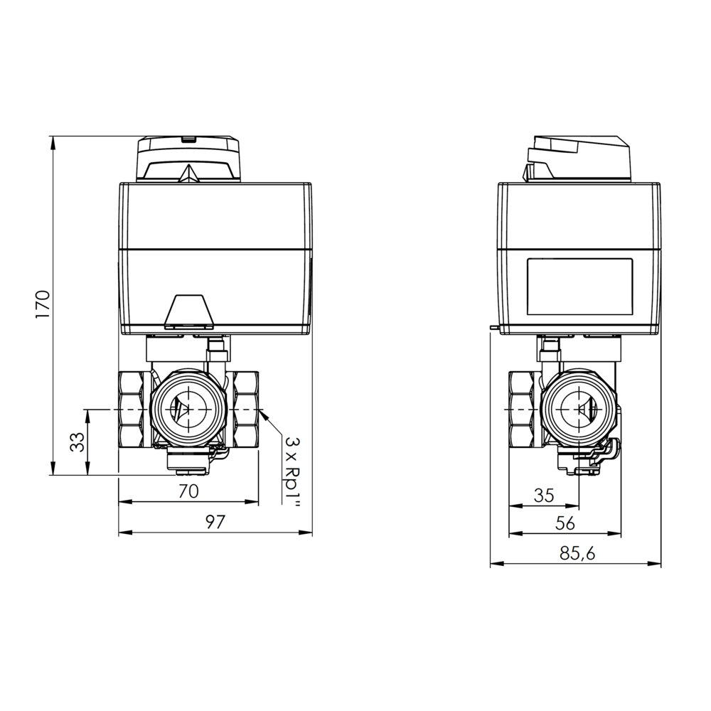 Zawór obrotowy trójdrogowy AFRISO ARV 384 Vario ProClick, mieszający, Siłownik elektryczny ARM 343, DN 25