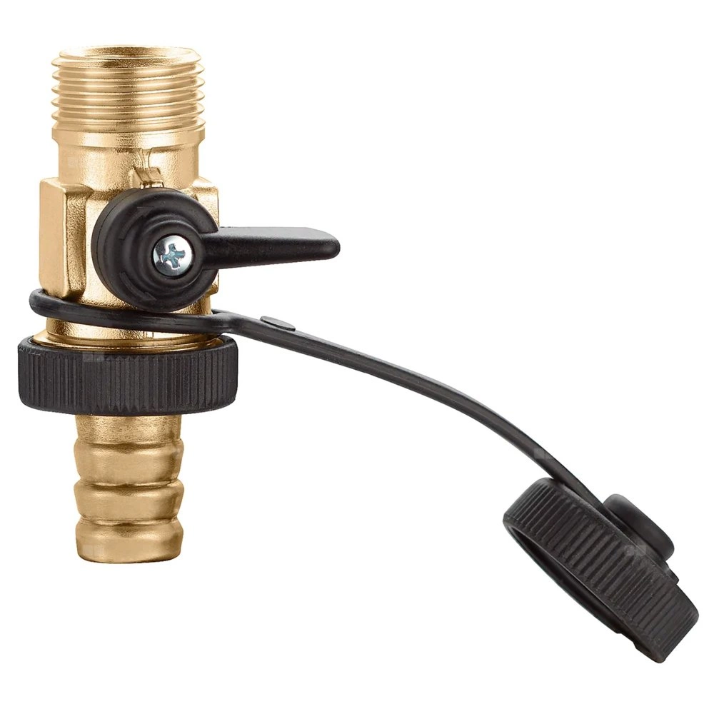 Zawór spustowy z króćcem do węża i zamknięciem W komplecie z dźwignią ręczną Przyłącze: G 1/2" A (ISO 228-1) GZ. Maksymalne ciśnienie pracy: 10 bar. Zakres temperatury medium: 5–110 °C.