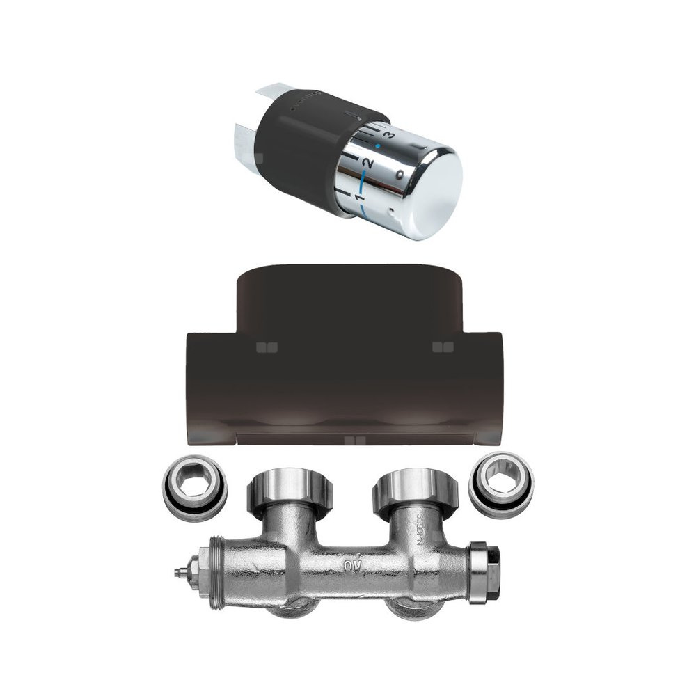 Zawór termostatyczny kątowy, zestaw, RAL9005 MT (schwarz soft)