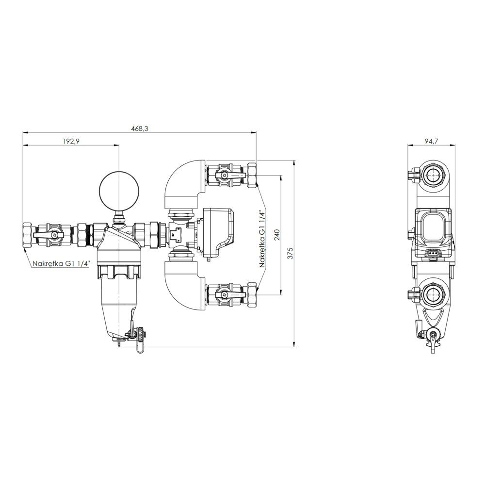 Zespół powrotu do pompy ciepła AMB Lite z zaworem przełączającym AZV, separatorem zanieczyszczeń ADS 181, DN25, przyłącza G1 1/4"