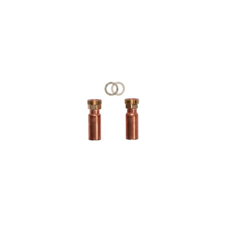 Zestaw złączy 1"/28 mm, gwint zewnętrzny z uszczelnieniem płaskim na rurze miedzianej 28 mm do zaciskania lub lutowania.