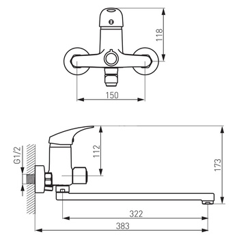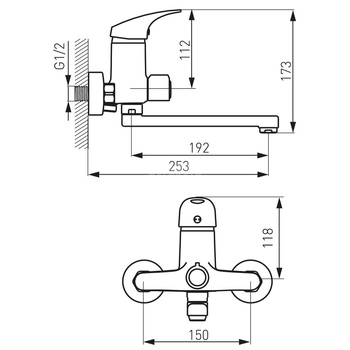 Bateria wannowo-umywalkowa ścienna FERRO FERRO ONE, chrom, z przyłączem natrysku