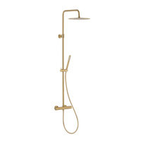 MOZA DESZCZOWNIA WANNOWA PREMIUM Z DŁUŻSZYM DRĄŻKIEM, Z BATERIĄ NATRYSKOWĄ TERMOSTATYCZNĄ, ZŁOTY SZCZOTKOWANY PVD