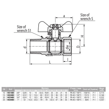 Zawór kulowy VALVEX Onyx mosiądz niklowany, PN40 3/8'' GZ x GW, uchwyt: motylek
