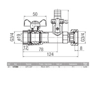 Zawór kulowy VALVEX Spin mosiądz niklowany, PN25 3/4'' GW z zaworem spustowym, uchwyt: motylek (czerwony)